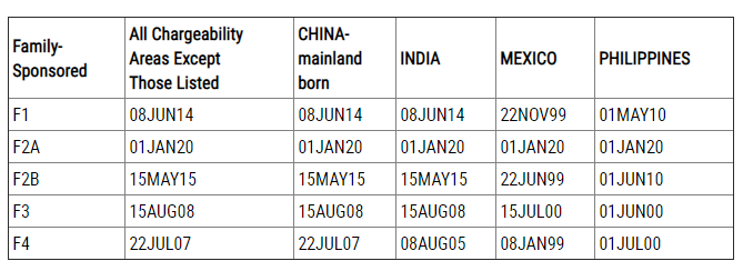 F2A(永久居民的配偶和未婚21岁以下未成年子女):表B前进31天来到2020年1月1日。